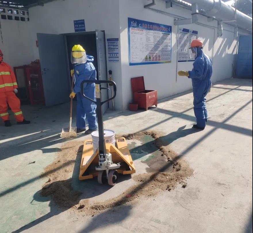 本次演練主要分為化學(xué)品安全知識宣講、化學(xué)品泄漏應(yīng)急處置、疏散逃生演練和滅火器使用方法講解等四個環(huán)節(jié):