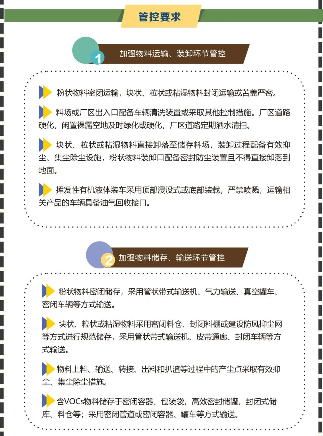標(biāo)準(zhǔn)要求企業(yè)在VOCs物料儲(chǔ)存、輸送、使用、處置等環(huán)節(jié)實(shí)施全過(guò)程控制。主要有: