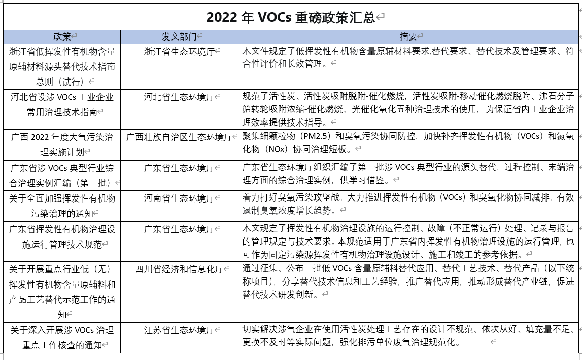 做預(yù)測(cè)通常很難,但托國(guó)家政策穩(wěn)定的福,你不需要?jiǎng)佑萌魏文X力,也能知道一些大氣污染防治工作的發(fā)展趨勢(shì):比如由末端治理逐步轉(zhuǎn)向源頭治理。因而在2022年“低揮發(fā)性有機(jī)物含量原輔材料源頭替代”會(huì)被各地方頻繁提起。坦白來(lái)講,這與VOCs治理企業(yè)關(guān)系并不大,更多的是排污企業(yè)與上游供應(yīng)鏈的優(yōu)化重組,但低揮發(fā)性有機(jī)物含量原輔材料滲透率的提高,必然伴隨著VOCs排放標(biāo)準(zhǔn)的收嚴(yán),VOCs治理企業(yè)需要未雨綢繆,加強(qiáng)技術(shù)儲(chǔ)備,以應(yīng)對(duì)更為嚴(yán)苛的要求和更為激烈的競(jìng)爭(zhēng)。