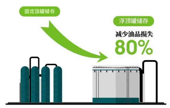 固定頂罐制造簡單、價格較低,應用最為廣泛,VOCs排放也最為突出,約占儲罐排放總量的80%以上。浮頂罐的內部有一個漂浮在貯液表面上的浮動頂蓋,隨著儲液的輸入輸出而上下浮動,浮頂與罐壁之間有一個環(huán)形空間,這個環(huán)形空間有一個密封裝置,使罐內液體在頂蓋上下浮動時與大氣隔絕,從而大大減少了儲液在儲存過程中的蒸發(fā)損失。采用浮頂罐儲存油品時,可比固定頂罐減少油品損失80%左右。