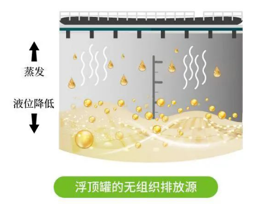 浮頂罐VOCs排放廢氣來源主要為掛壁損失、小呼吸損失: